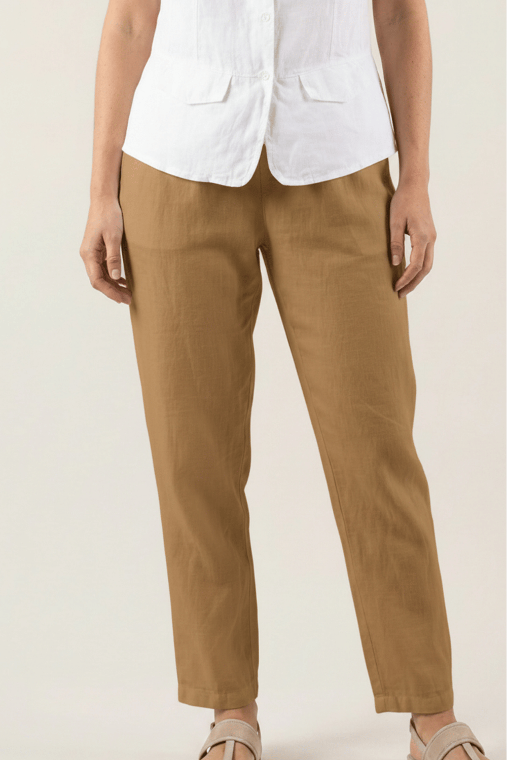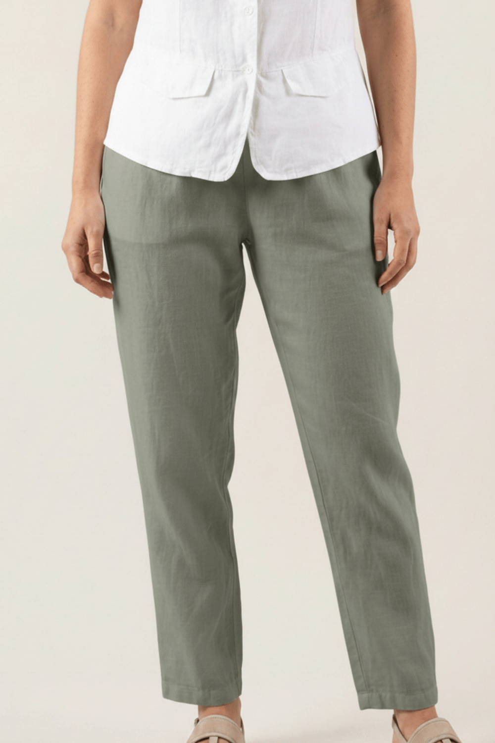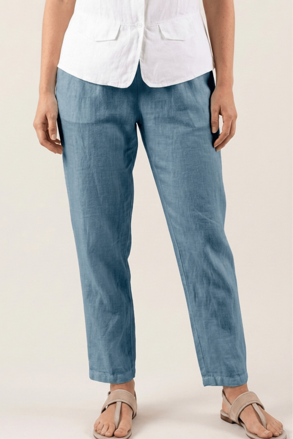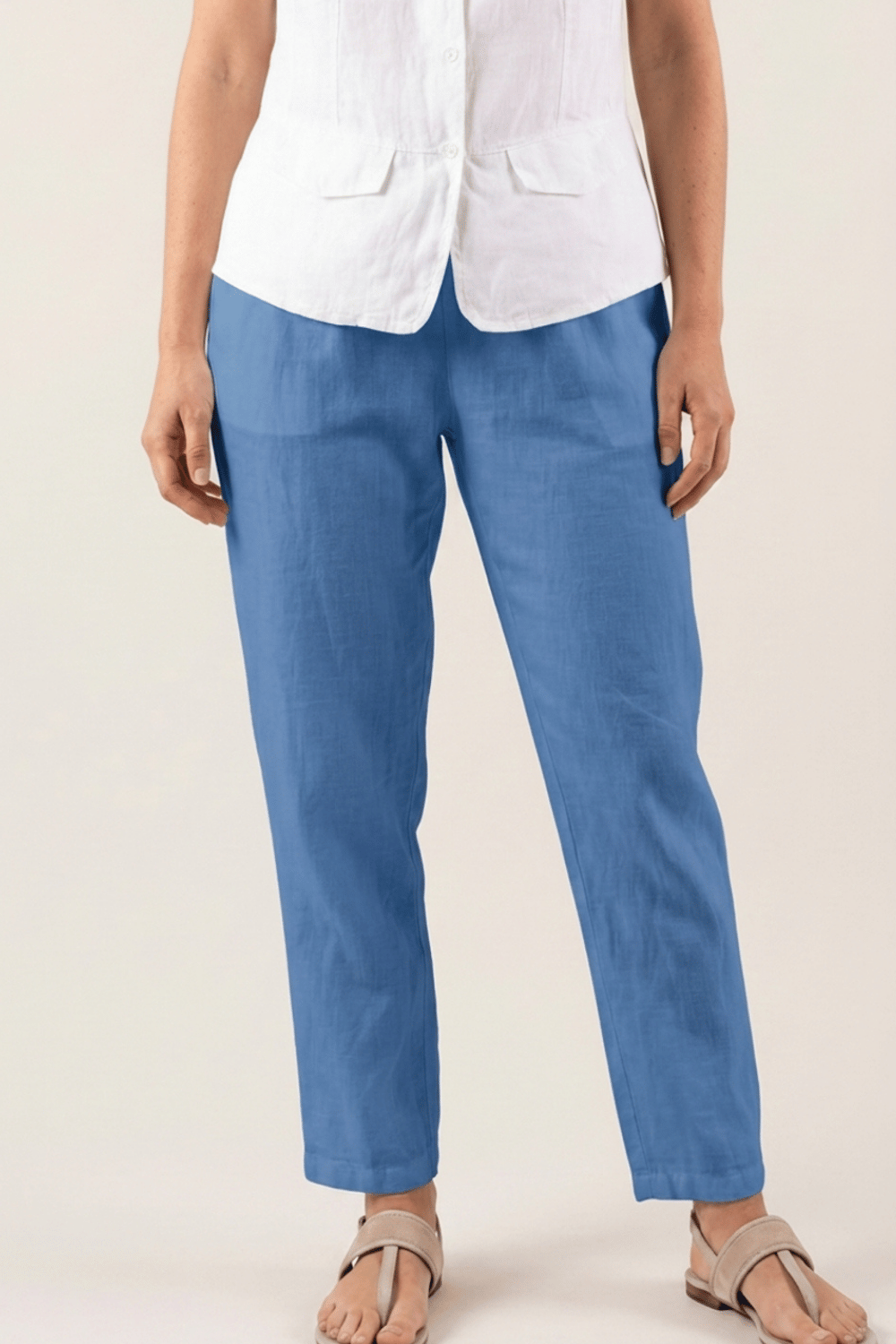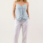 Pour un look chic et féminin, associez le pantalon Adena avec un chemise en lin et des sandales compensées. Ce modèle polyvalent peut aussi être porté avec un débardeur en lin et des espadrilles pour une silhouette décontractée mais élégante.