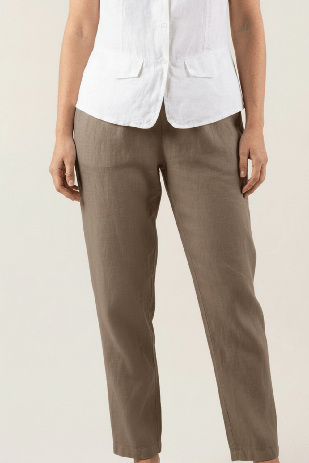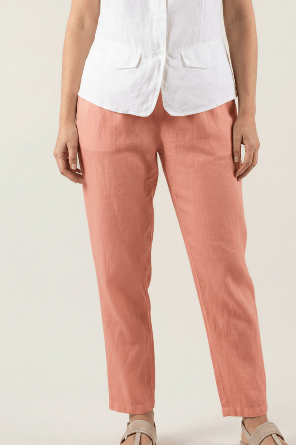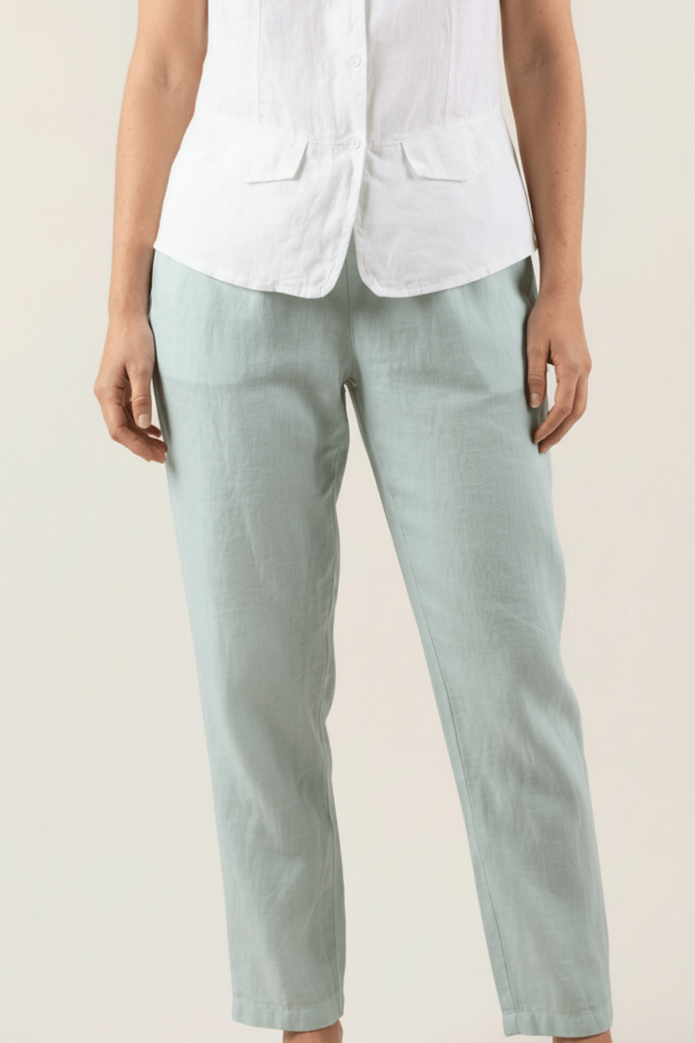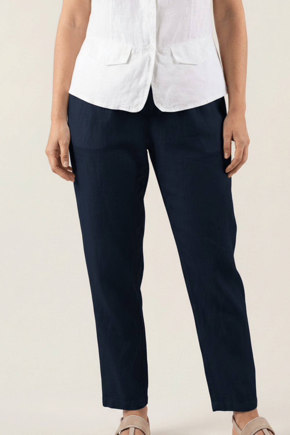 Pour un look chic et féminin, associez le pantalon Adena avec un chemise en lin et des sandales compensées. Ce modèle polyvalent peut aussi être porté avec un débardeur en lin et des espadrilles pour une silhouette décontractée mais élégante.