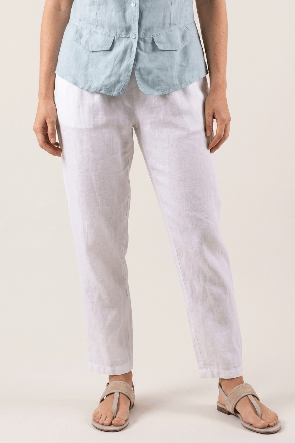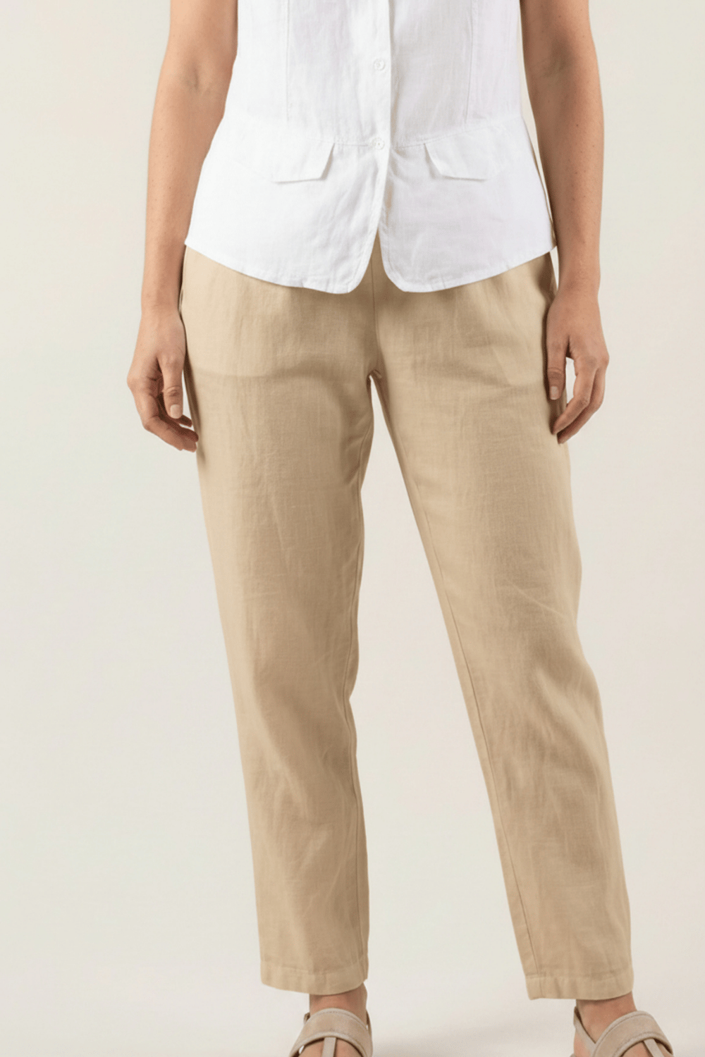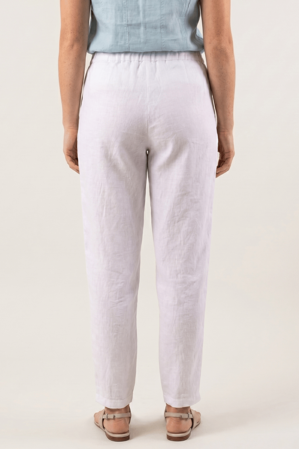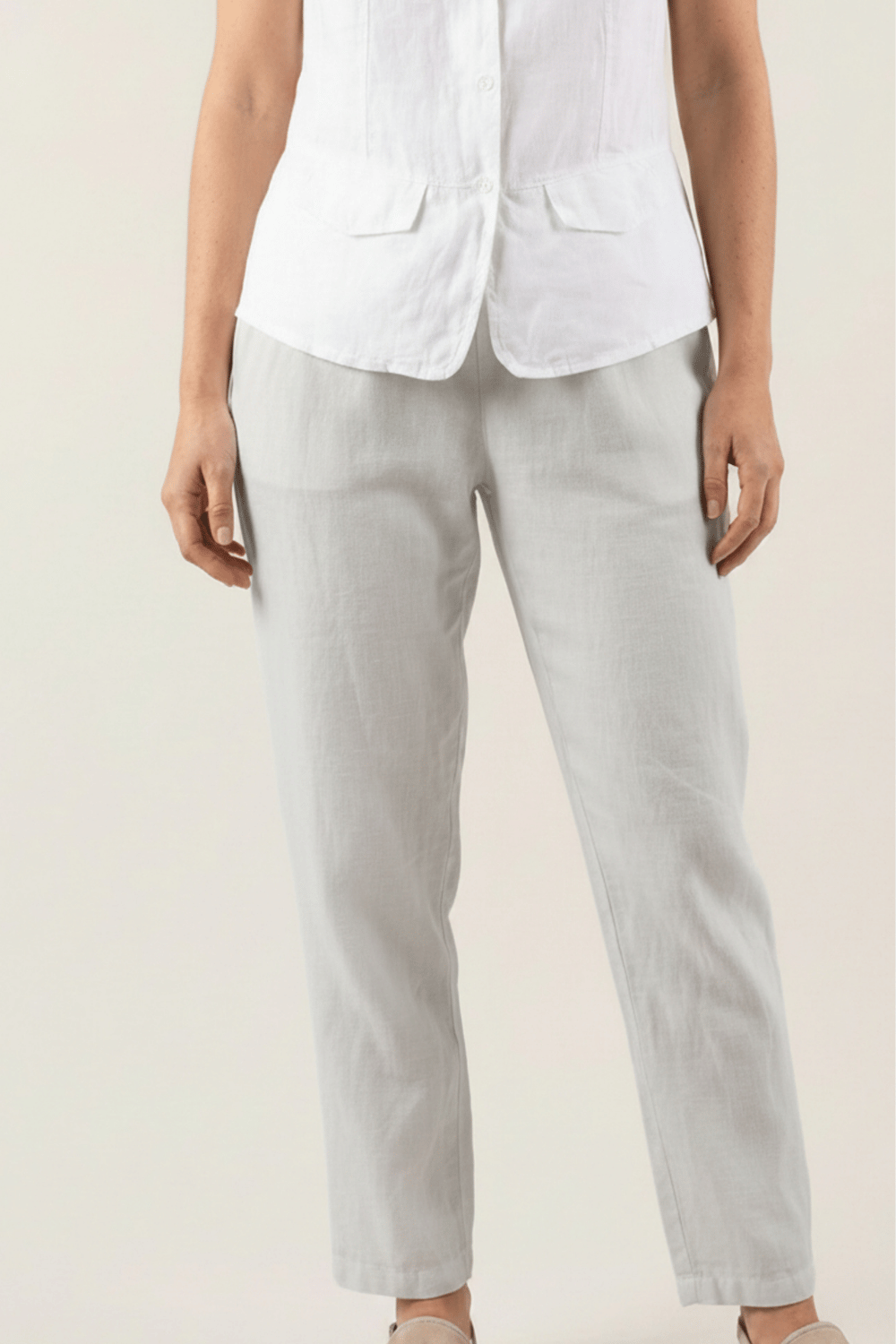 Pour un look chic et féminin, associez le pantalon Adena avec un chemise en lin et des sandales compensées. Ce modèle polyvalent peut aussi être porté avec un débardeur en lin et des espadrilles pour une silhouette décontractée mais élégante.