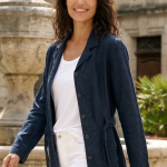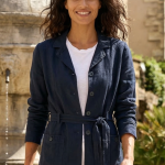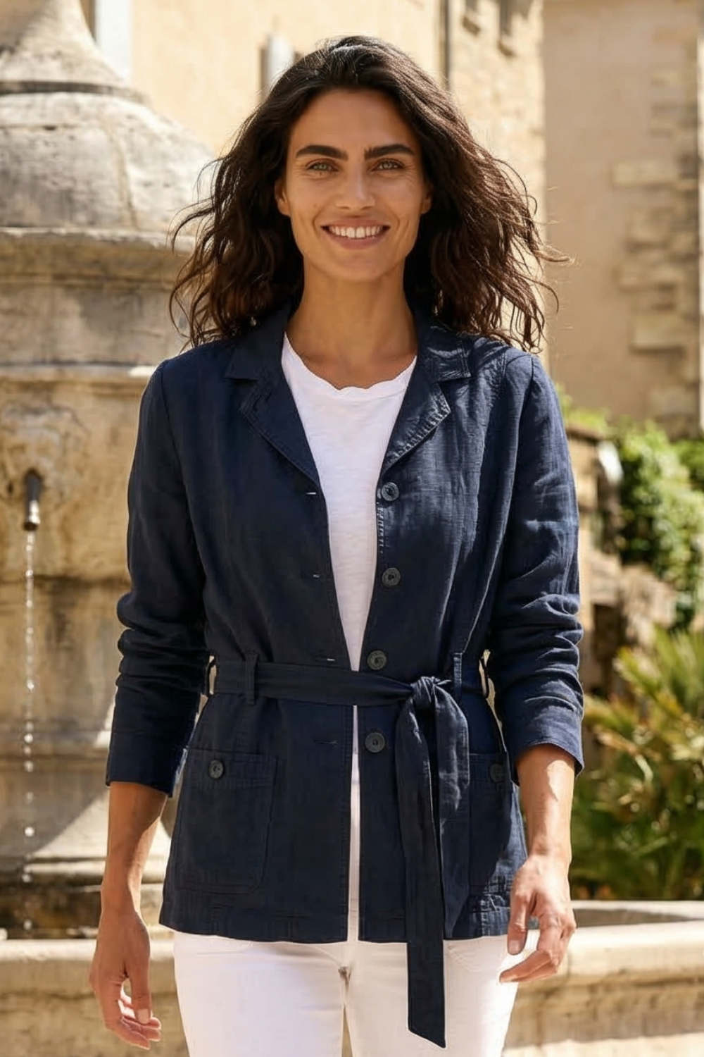 • Look Working Girl Estival : Portez la veste Eva avec un pantalon en lin assorti ou un chino clair. Nouez la ceinture pour une allure professionnelle et structurée.