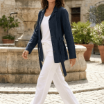 • Look Soirée de Vacances : Superposez-la à une robe fluide ou une combinaison. Elle vous protègera de la brise marine tout en conservant une ligne sophistiquée grâce à son tombé impeccable.