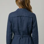 Une saharienne légère en 100% lin. Sa coupe structurée est adoucie par une ceinture assortie à nouer qui souligne la taille avec féminité.