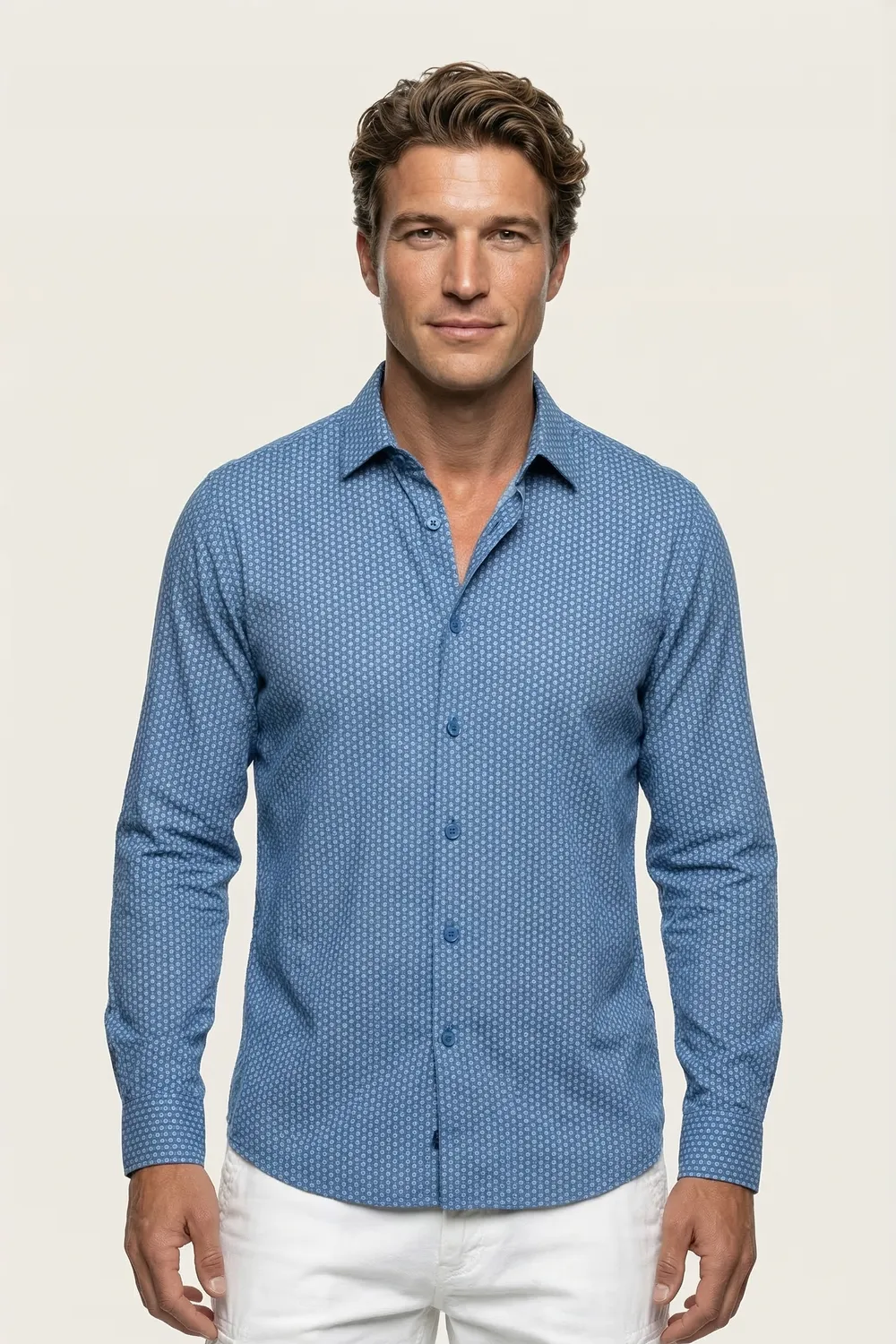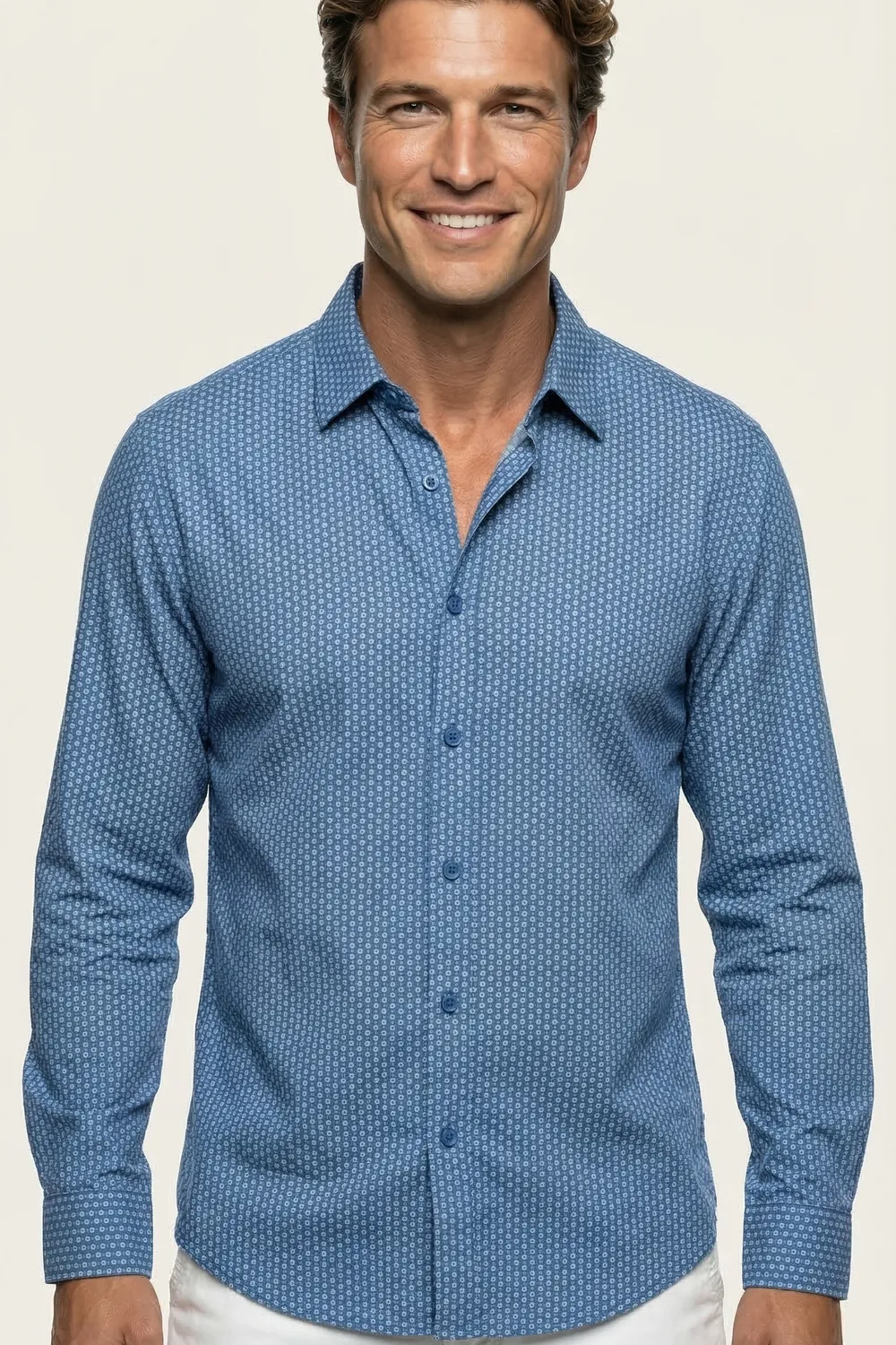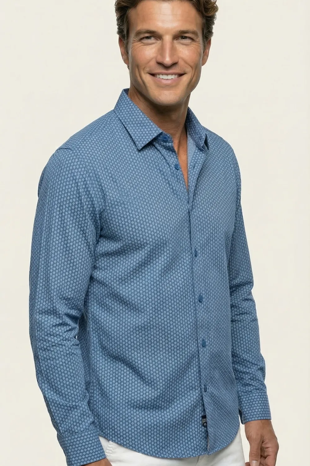 • Look Business Chic : Portez la chemise Grant rentrée dans un pantalon de costume. Son imprimé discret remplace avantageusement une chemise unie pour apporter une note de modernité à votre tenue de bureau.