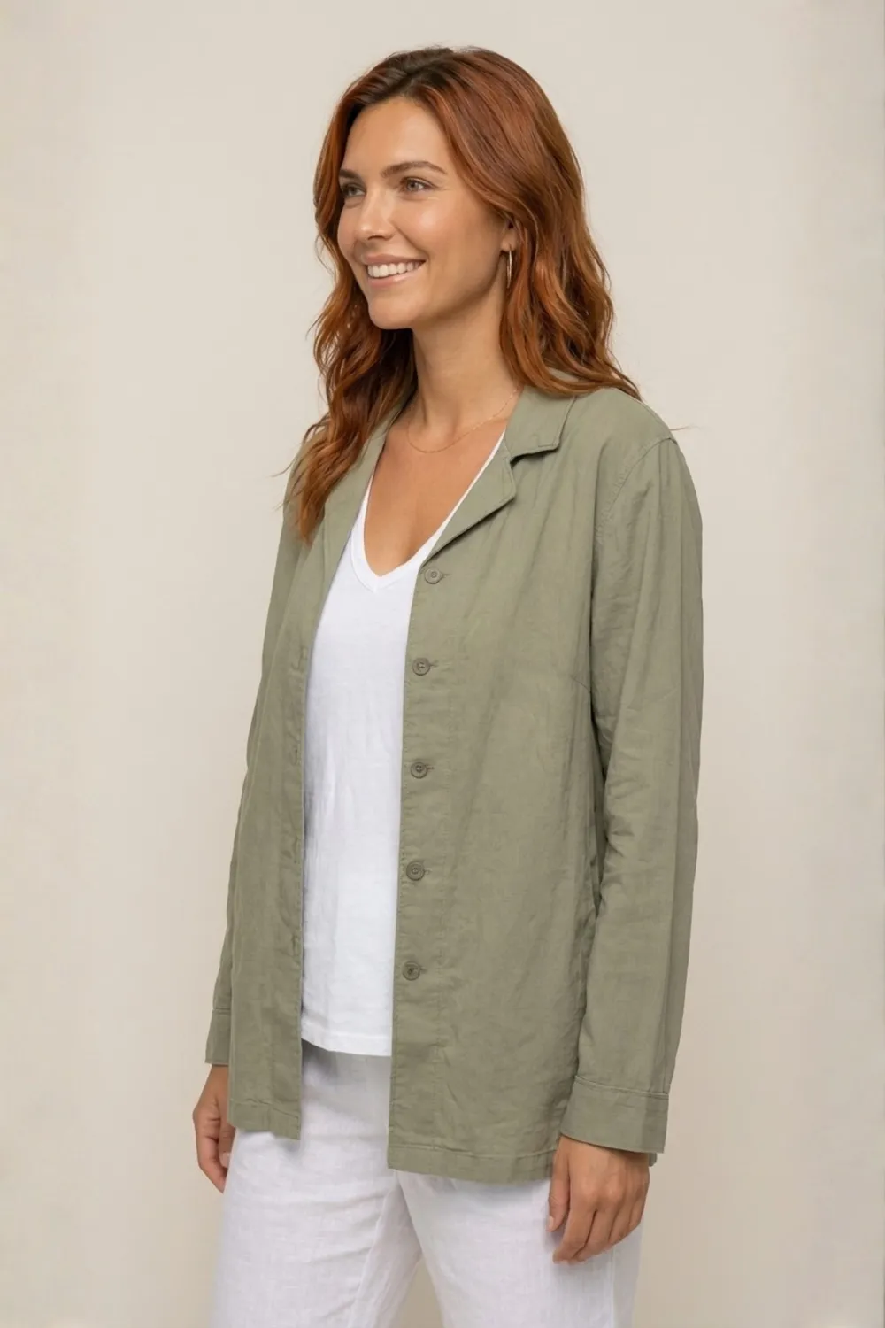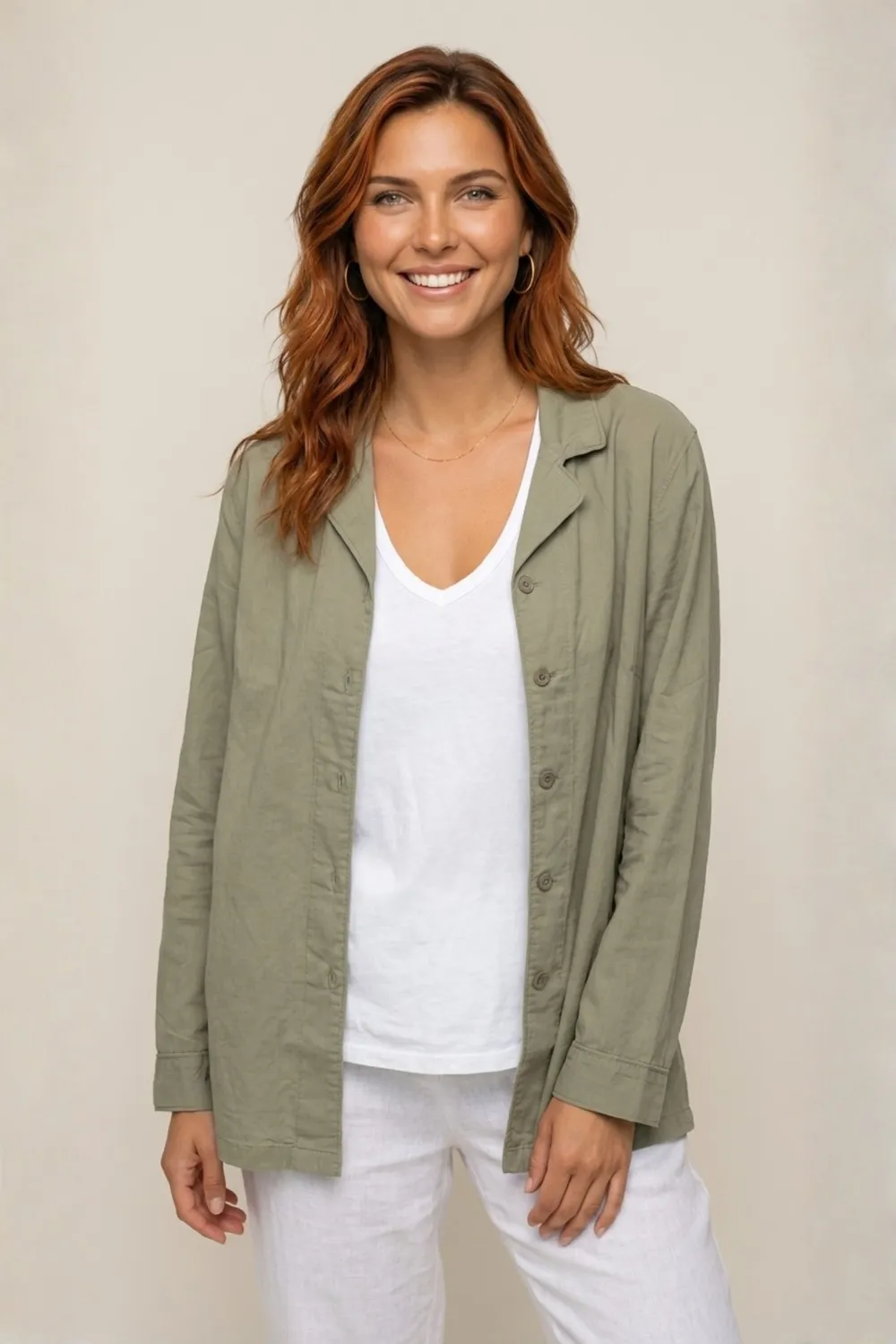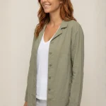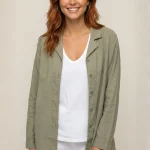 Rodd se distingue par sa coupe ample et longue, évoquant une surchemise confortable. La couleur vert sauge/kaki délavé est facile à associer et apporte une touche naturelle et terreuse à votre look. Elle présente un col chemisier classique et une patte de boutonnage verticale pour une silhouette épurée. Les manches longues sont parfaites à retrousser pour un effet encore plus décontracté.