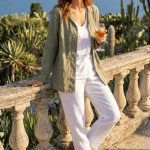 • Look Bohème Vacances : Utilisez Rodd comme une veste légère sur une robe nuisette ou une robe d’été courte à fines bretelles. Ajoutez un chapeau de paille, un collier de perles et des espadrilles. Idéal pour les vacances ou un festival.
