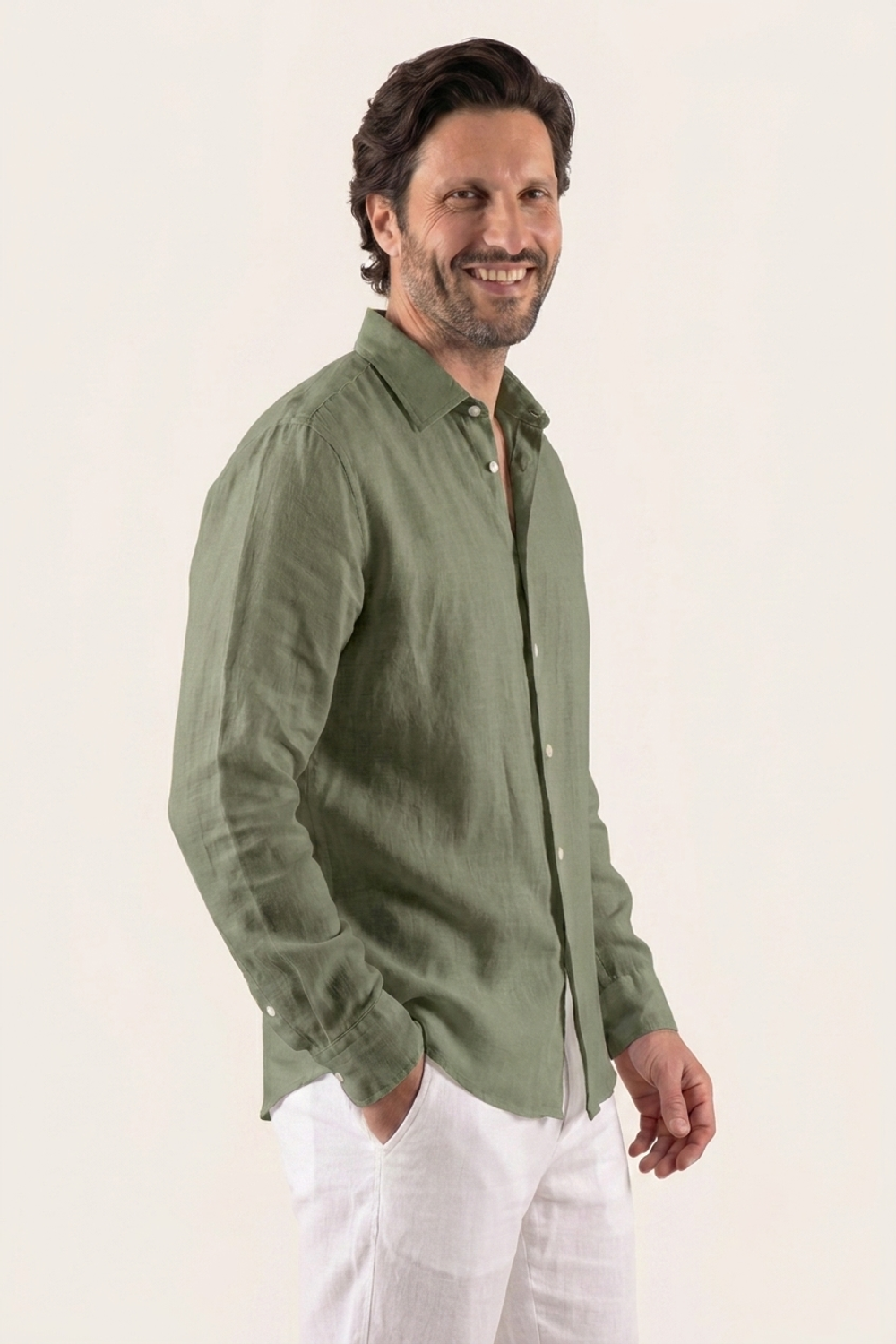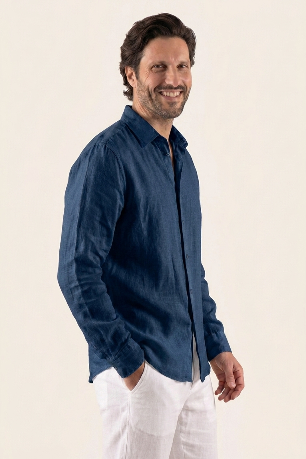 Ce vêtement est confectionné en 100 % lin, une fibre végétale noble, vivante et pleine de caractère.