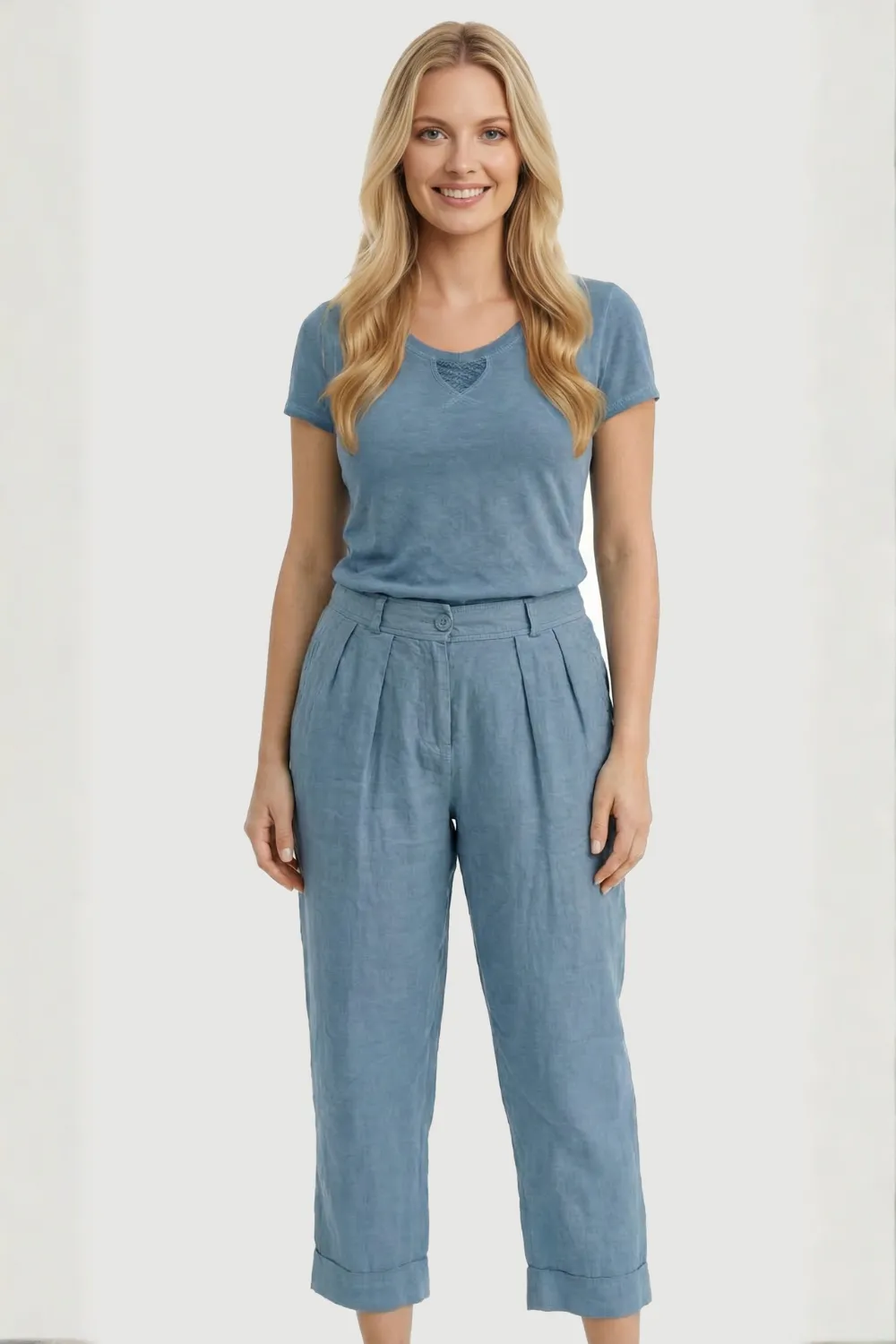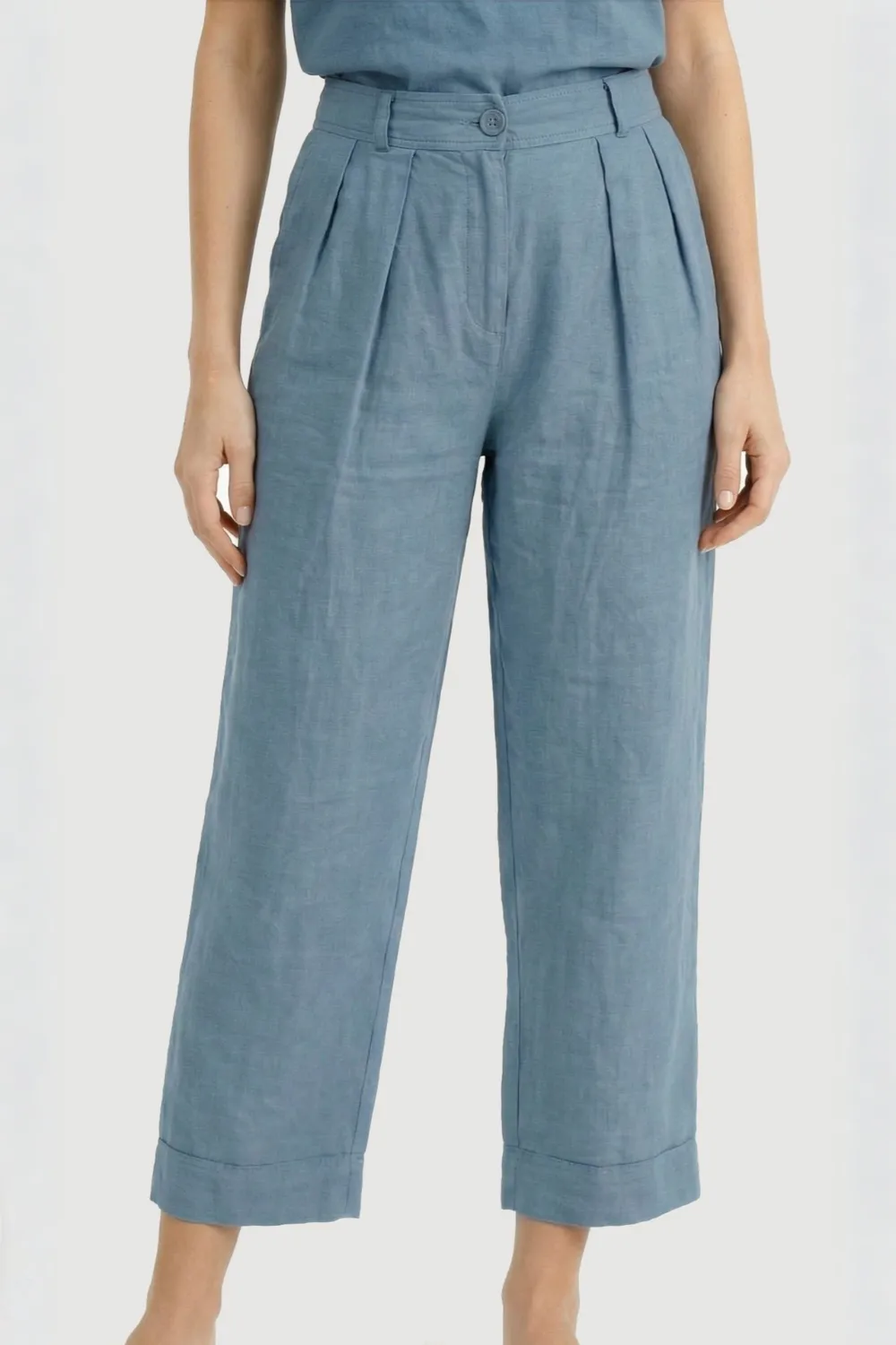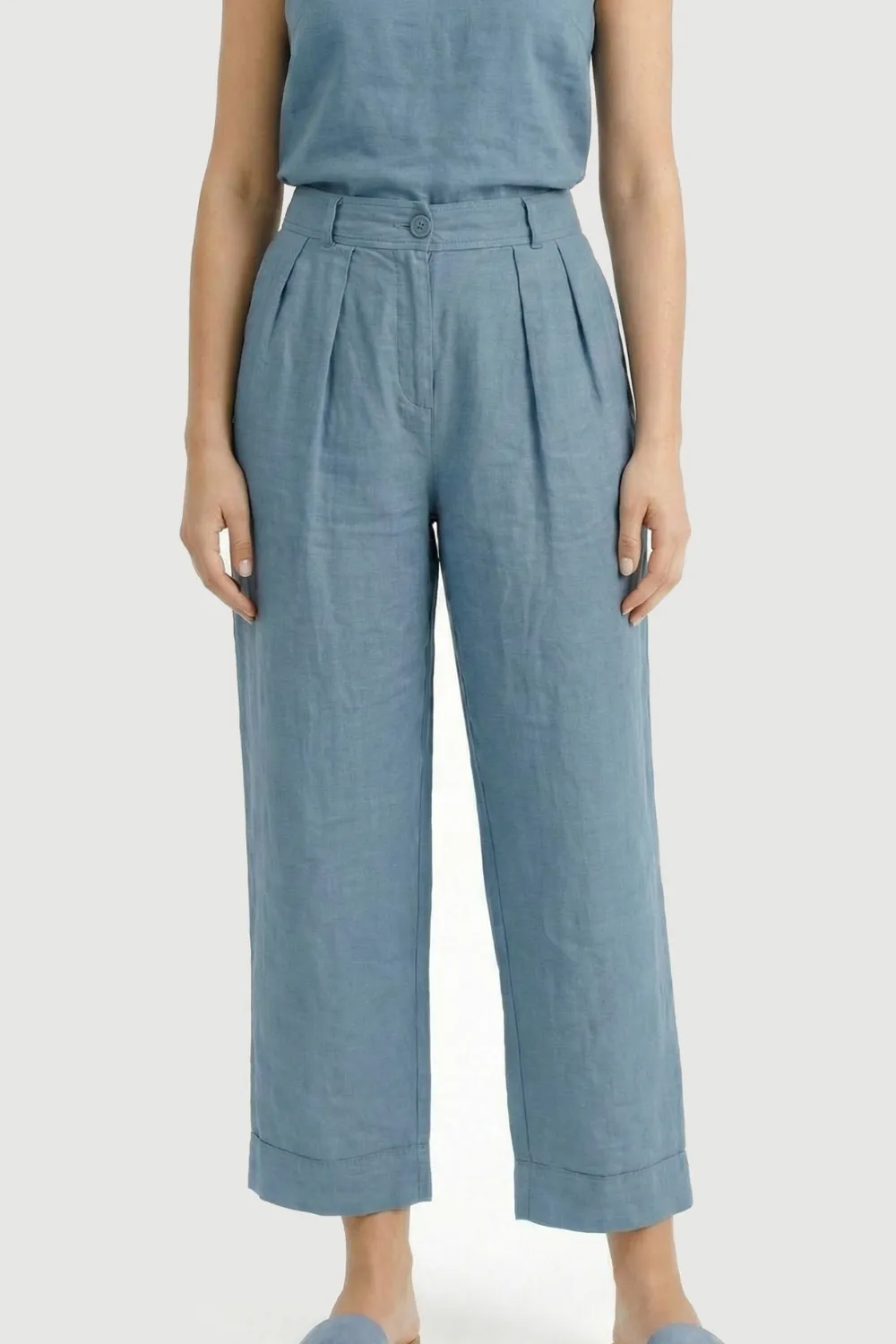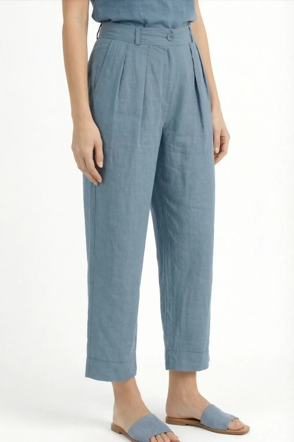 · Look Minimaliste Chic : Portez le pantalon Nico avec un petit haut en coton rentré à l’intérieur pour mettre en valeur les plis de la taille et le revers du bas. Ajoutez des sandales en cuir pour un rappel naturel.