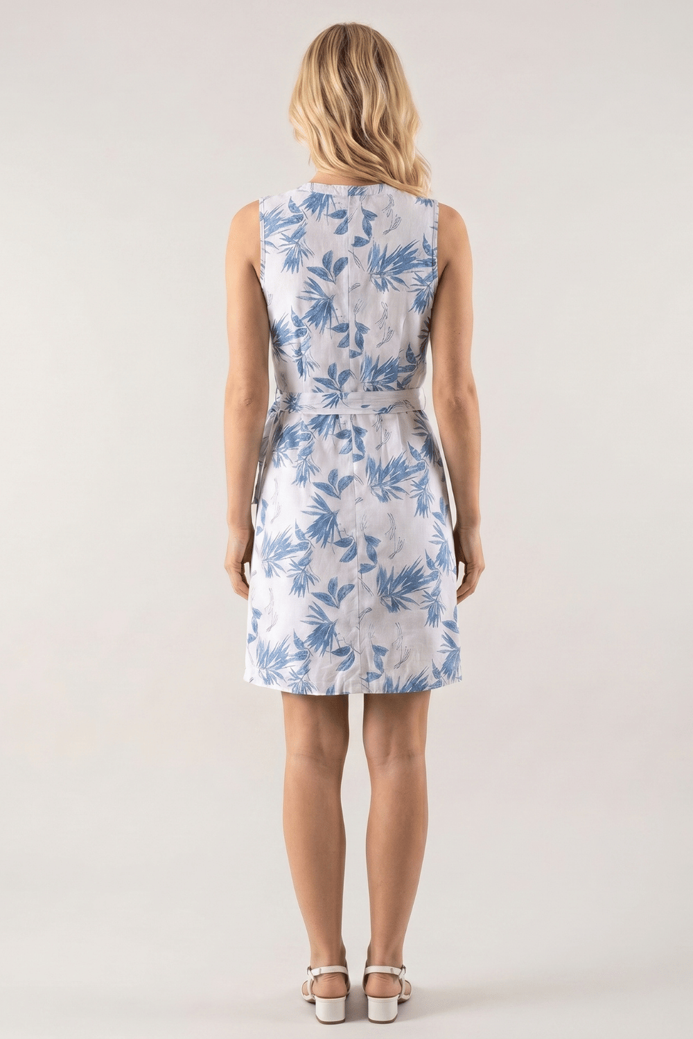 La robe ANABELLA incarne l’élégance moderne avec sa coupe asymétrique audacieuse et son imprimé feuilles raffiné.