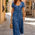 Avec ses manches courtes et sa jupe à volants, elle est la robe idéale pour une allure bohème et raffinée.
