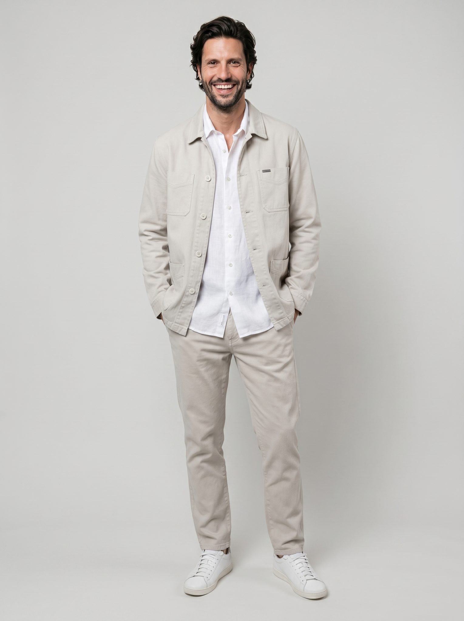 Vous pouvez aussi l’associer à un pantalon droit en Lin ou en coton pour une version plus habillée, mais toujours dans l’esprit casual chic.
